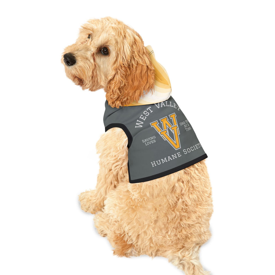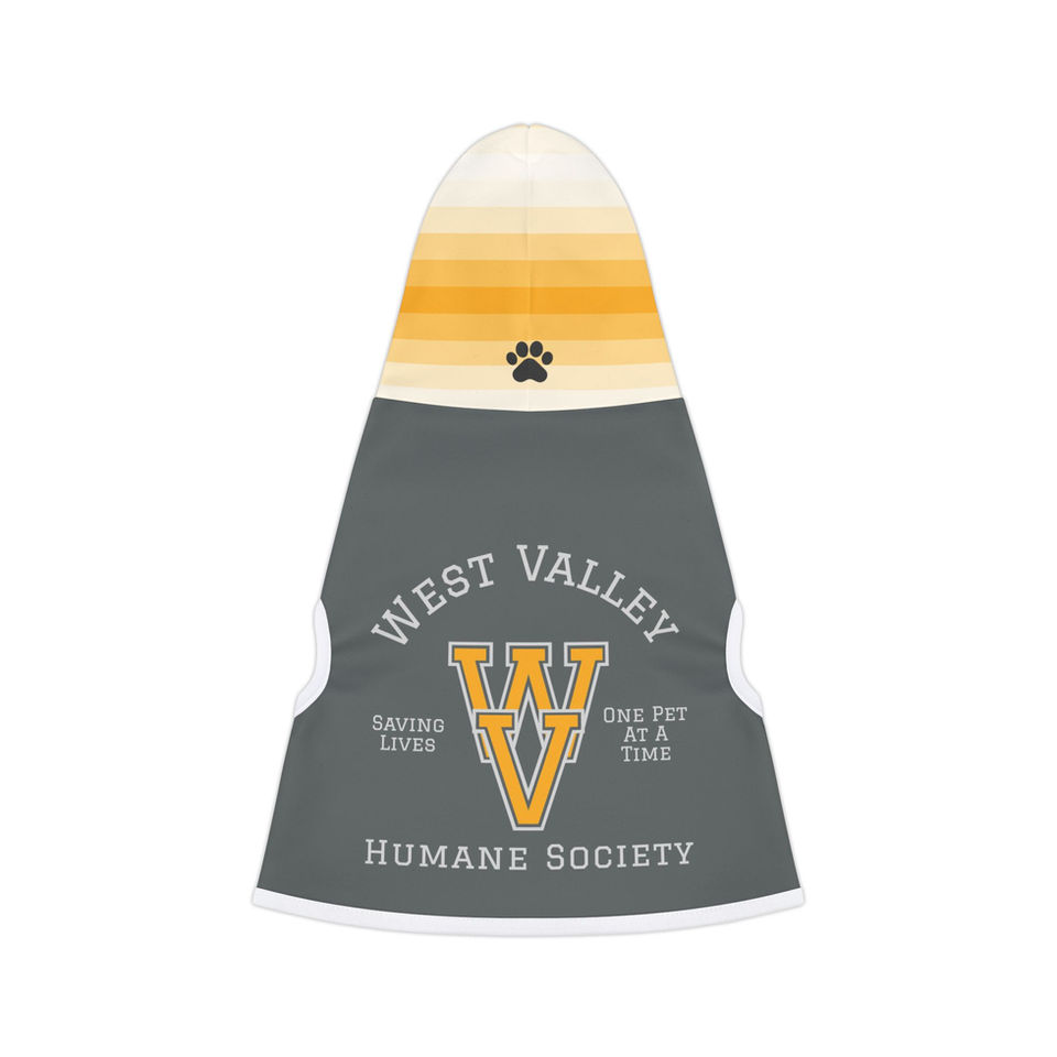 Let your pet show off their school spirit for saving lives with our Collegiate-Style Pet Hoodie! Featuring a bold West Valley Humane Society logo on the back, this cozy hoodie gives your furry friend a classic, varsity-inspired look while supporting a great cause. With the tagline "Saving Pets. One Life at a Time." proudly displayed, this hoodie is more than just a fashion statement—it’s a symbol of rescue and second chances.
